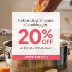To celebrate ProCook’s 30th birthday, enjoy 20% off when you spend £100 or more in-store at Dockside.